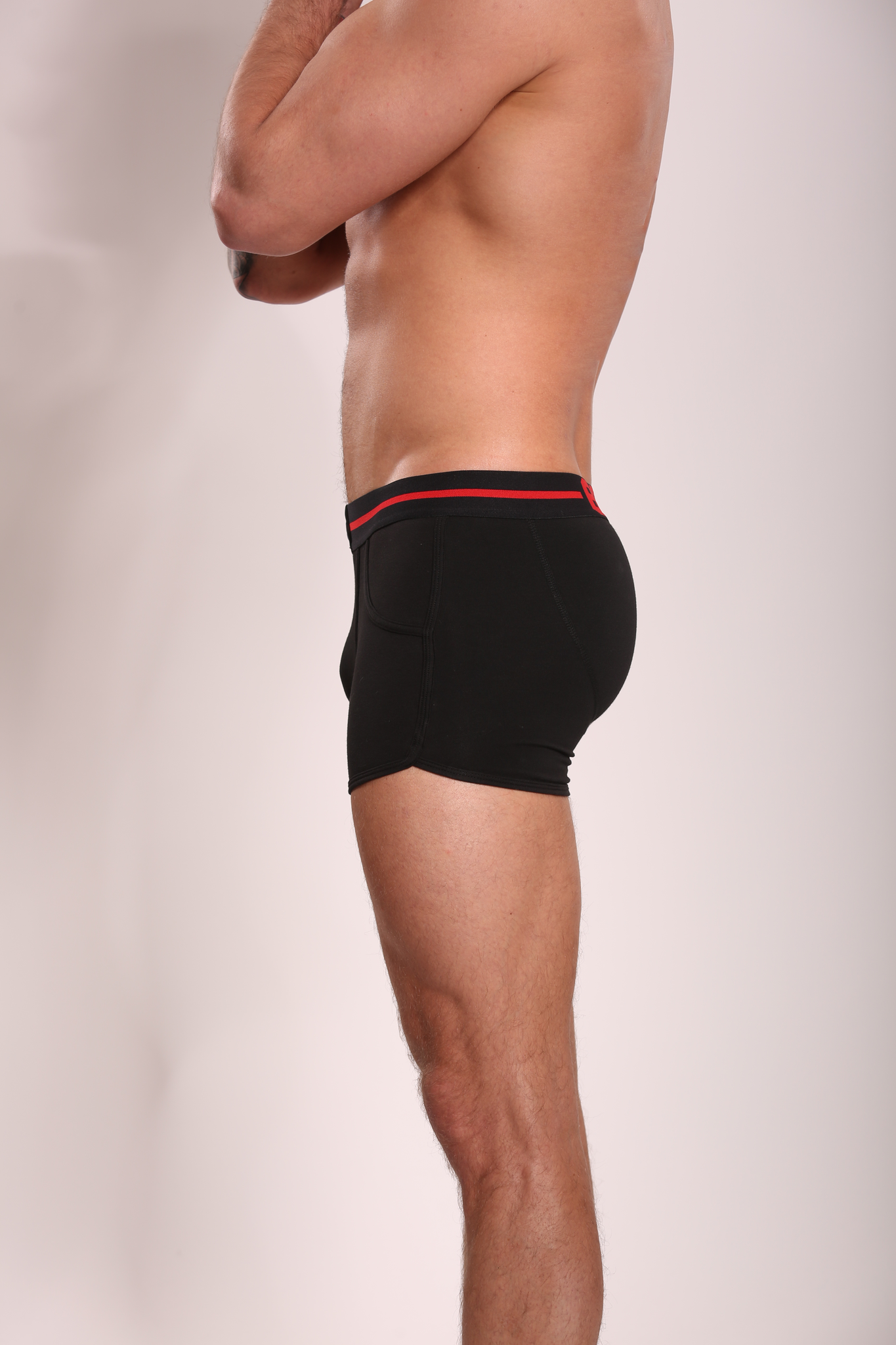 Heren Boxershort Zwart Effen | Katoen | Rode Streep